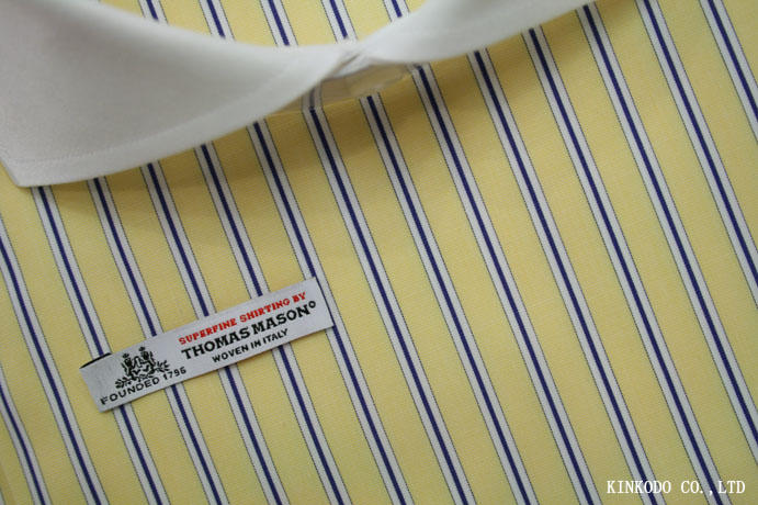 トーマスメイソンの黄色とネイビーのストライプのオーダーシャツ生地