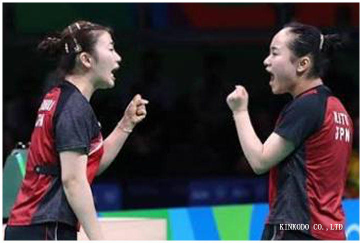 3位決定戦の時のダブルスの福原愛選手と伊藤美誠選手。