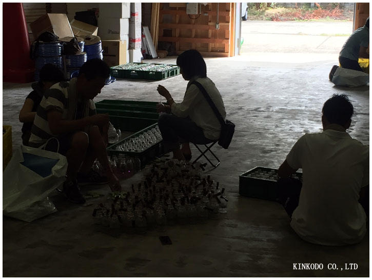 2時間で7ケース程作業しましたが、この山のような数を明日一日で。私は仕事の為に今日の午前中しかお手伝いをすることができませんでしたが、2万個のペットボタルが犀川を照らすのはさぞや綺麗でしょう。ただ、その為には2万個のペットボタルを犀川に敷き詰める作業と、終わってからまた電池を外す作業が残っております。