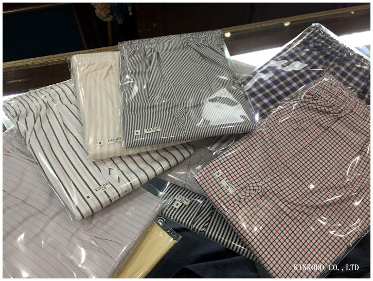 さて、金港堂では密かに?オーダーシャツ生地で作ったトランクスを販売しております。ただ工場の空き時間に作るので、定期的には仕上がってくるわけではないのですが。今回割りとまとまった数が仕上がってきました。