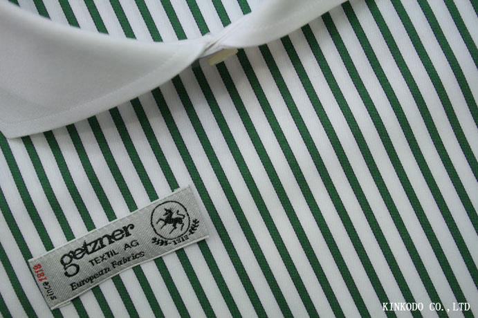 グリーンの太ストライプ生地 オーストリア・ゲッツナー社製 綿100%