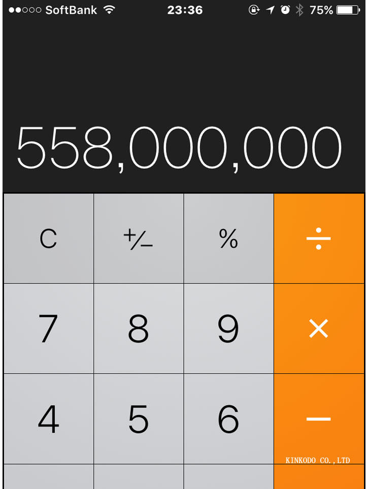 iPhoneで計算しようと思ったら、桁が足りませんでした。