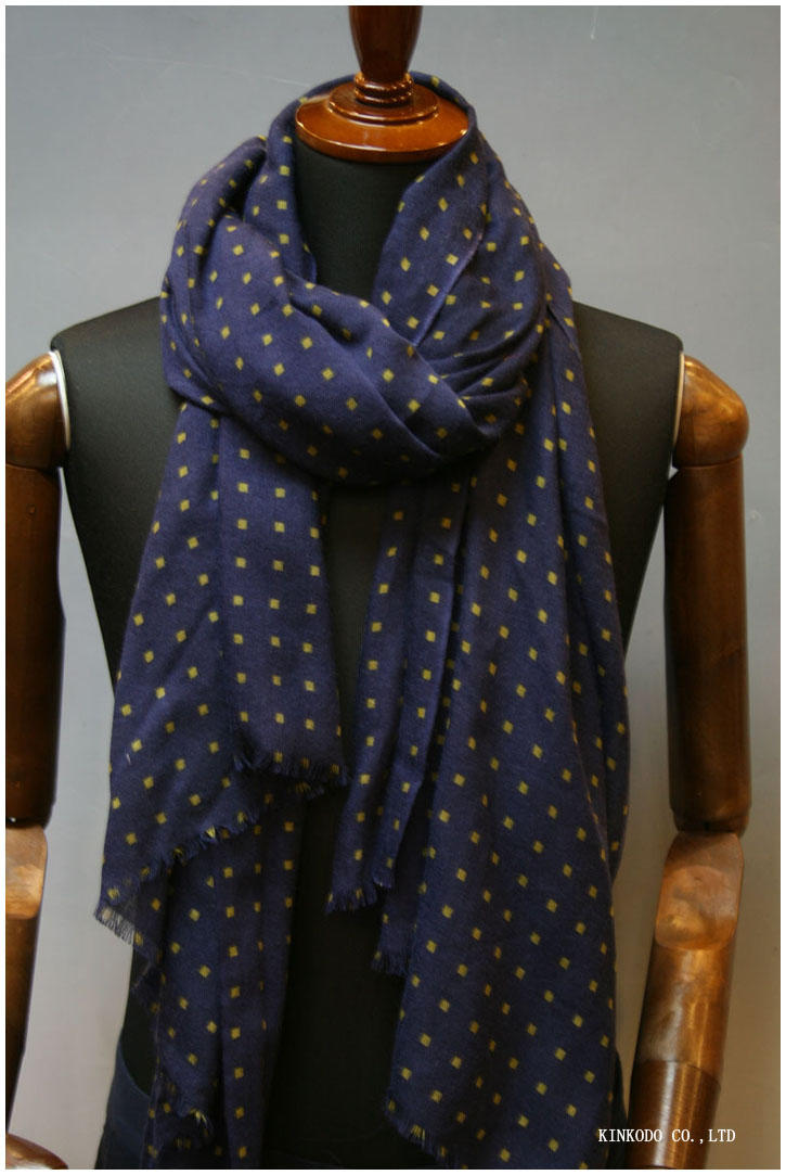 LOVAT&GREEN 【ロバート&グリーン】ネイビーのプリントストール 価格 23,760円(税込)ご注文お待ち申し上げております。それでは行ってきます。