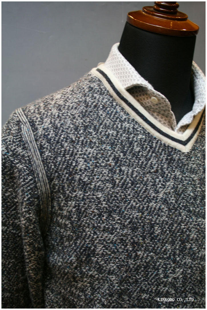 懐かしいというか、久しぶりにVネックセーターの登場です。イタリア製で素材もよい。織り方もクラッシックなメランジ調と言ったらいいのでしょうか?ファッションは古いものが新しくもなったりします。これも新しい感覚。いかがでしょうか?