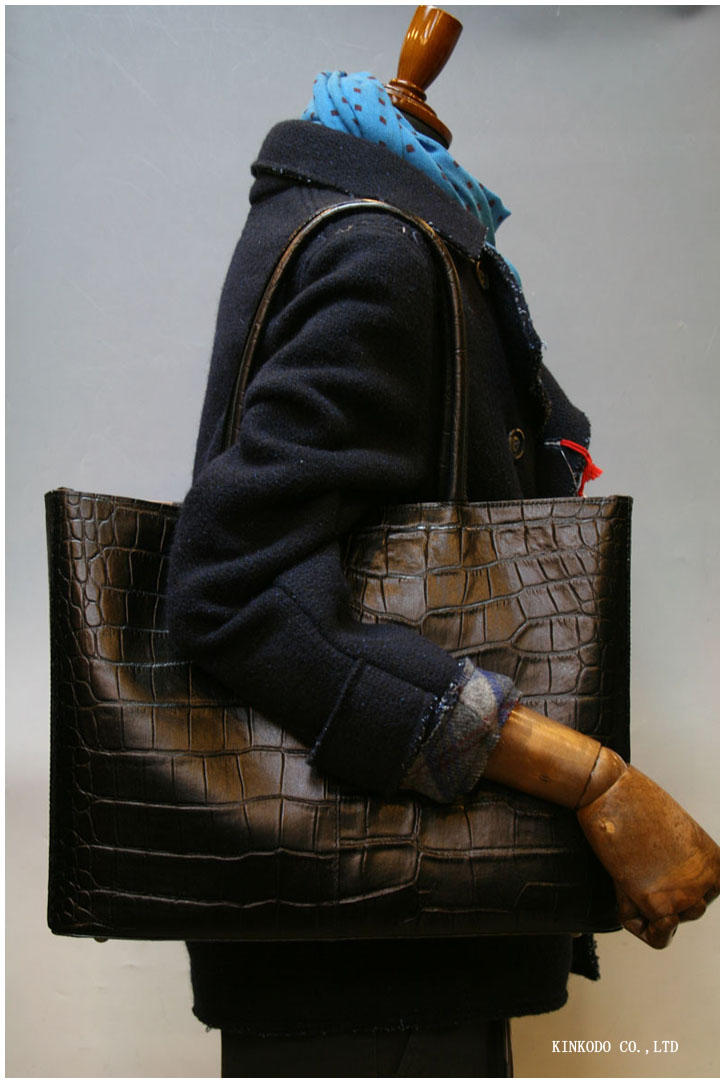 クロコの型押し(牛革)トートバッグ再入荷しました。