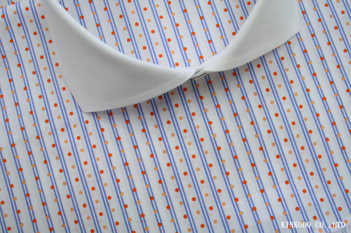 ストライプにドットの変形プリント柄 綿100% スイスRECO(レコ)社生地 お仕立て上がり¥21,000+税