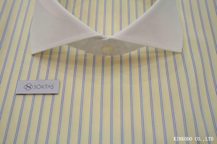 NO-9234369 イエローの細ストライプにブルーのストライプ SOKTAS(ソクタス)社製生地 トルコ 綿100%
