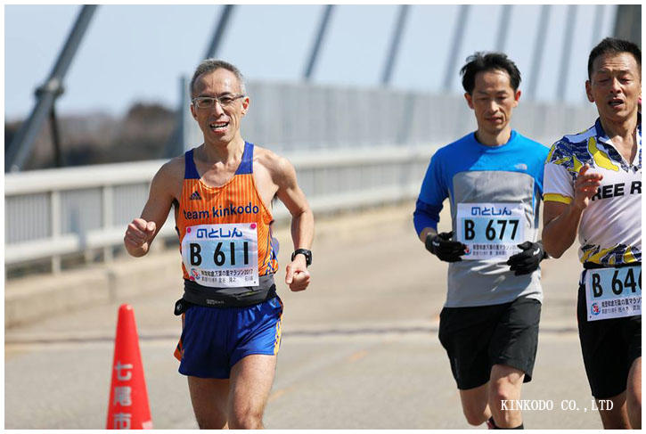 和倉温泉街に入ってきました。あの角を曲がると直線のみ、のこり195メートル。時計は3時間24分台。25分切っておけば、大阪マラソンのアスリート枠の権利は2年間は確保できる。一人を交わして自分の中での最大限の力を発揮してラストスパート。42キロの通過ラップは4ぷん50秒。