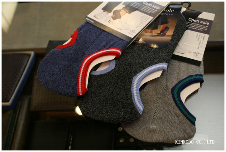 それに対して、穴空の方は、ちゃんと踵にスニーカーソックスが引っかかってついてくるのです。特許もとっているとか。お勧めします。1,080円(税込)ビジネス用もございます。