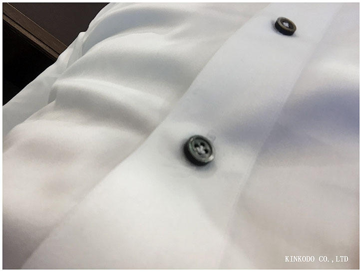 白のサテン生地に黒蝶貝ボタン。