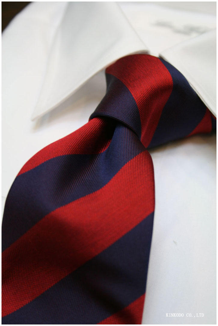 イタリア製生地を使った秋色のレッドとネイビーストライプネクタイ ¥8,800+税