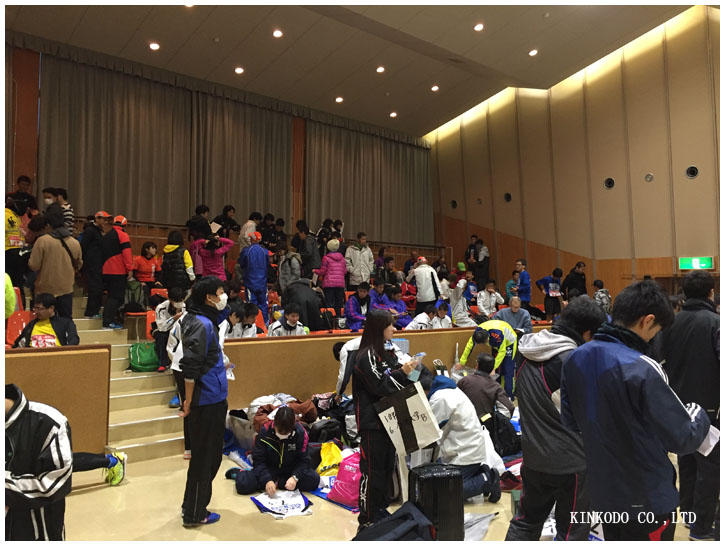 いつものようにグタグタとした、開会式を待つ我々、早々とバス時間になり、バスに乗り込みますが、なんと、名簿に間違いが。我々チームが一つずつ走順繰り上がった名簿を係りの人が持っていて、バスに乗り込むと何度も呼び出されるしまつ。何とかバスが出発して、自分の区間へ。チームメイトも一緒なので、楽しく自分が走る番を待つことに。