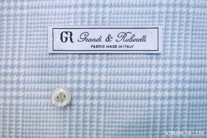 起毛素材の淡いブルーのグレンチェックの生地 イタリア・グランディ&ルビネッリ社製生地 綿100%