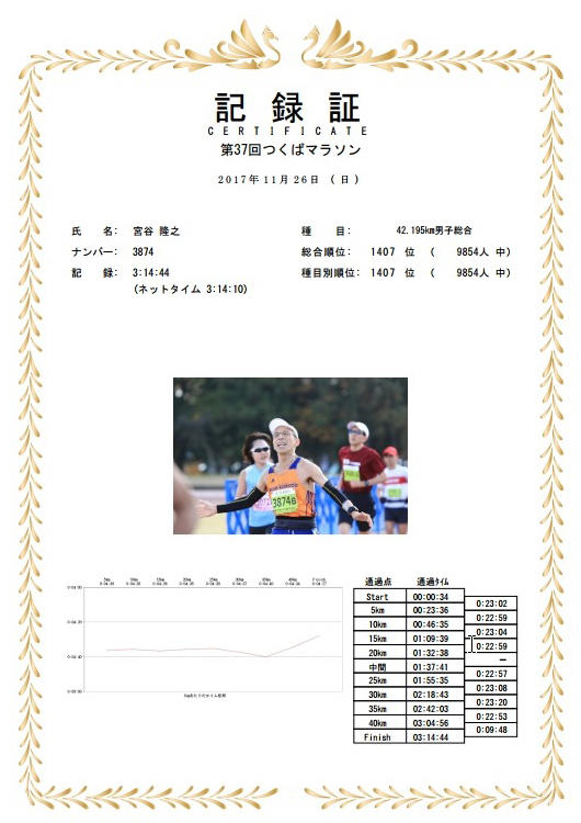 右下にグラフが載ってますが、1キロ辺りのタイムだそうです。よく足攣ったままで、スピード上げられました。来年もこのようなレースが出来るように頑張ります。