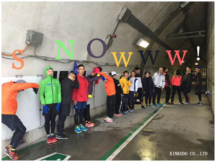 雪模様の中、多数のメンバーが集まりました。雪ということで本日の人文字は「SNOWWW!」だったのに。Nが反対向いてました。残念。