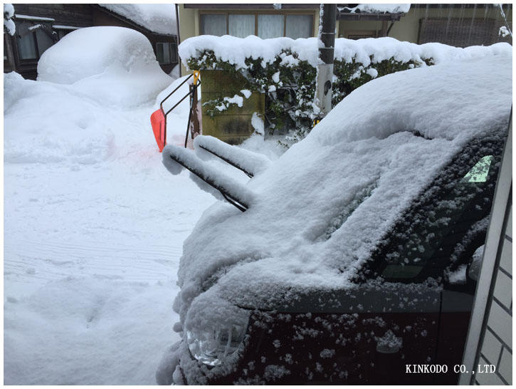 朝一で確認することは、車のワイパーの雪からの出方です。今日はセーフ。10~15センチ程度の積雪しかない。
