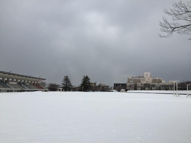 一レーンも除雪されていない。これが金沢マラソンを開催している金沢市の陸上競技場か?今度の会議で言ってやろ。と誓った私でした。