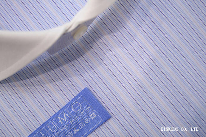 170番高級番手のブルーのローンストライプ生地 スイス ALUMO アルモ社製生地 コットン100% お仕立て上がり¥25,000+税、電話でのご注文も、ネットでのご注文も、ご来店されてのご注文も何かに特典つけているわけではありませんが、ご注文をお待ち申し上げております。