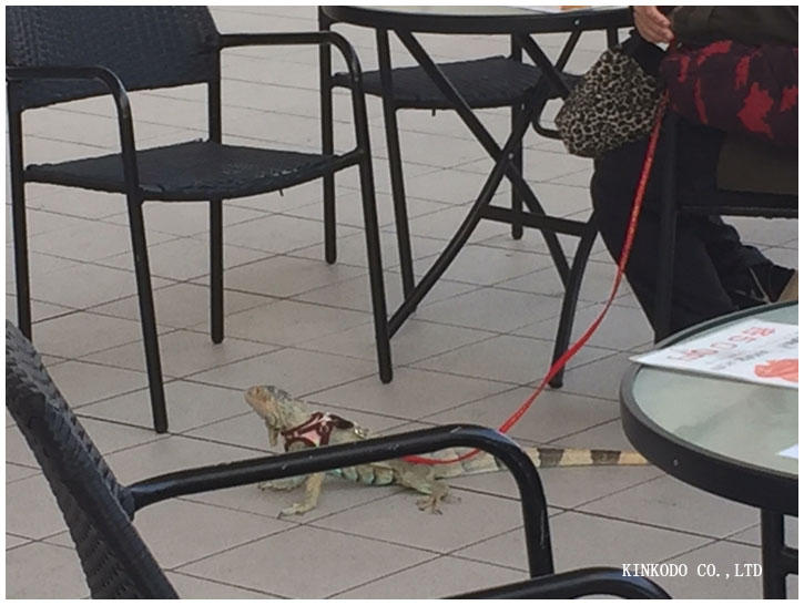 イグアナです。イグアナと散歩されていました。