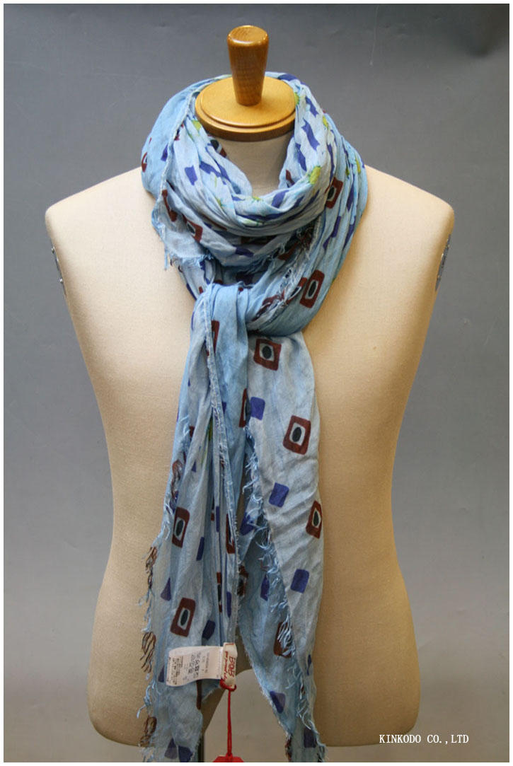 ピンクとブルーの房がポイントのスクエアストール 価格 18,360円 (税込)