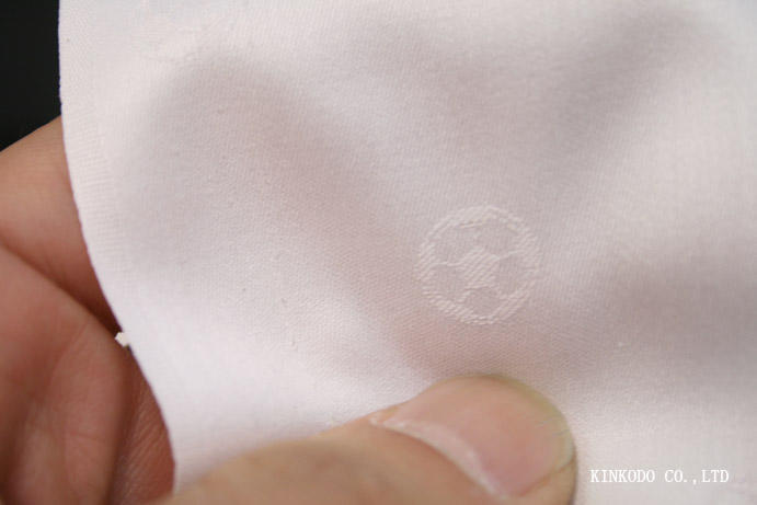 サッカーボール柄の白ドビー生地 エジプト綿 GIZA 100番手双糸 綿100%です。 お仕立て上がり¥16,000+税。もし日本が勝ったら¥15,000+税でお作りさせて頂きます。よろしくお願いいたします。