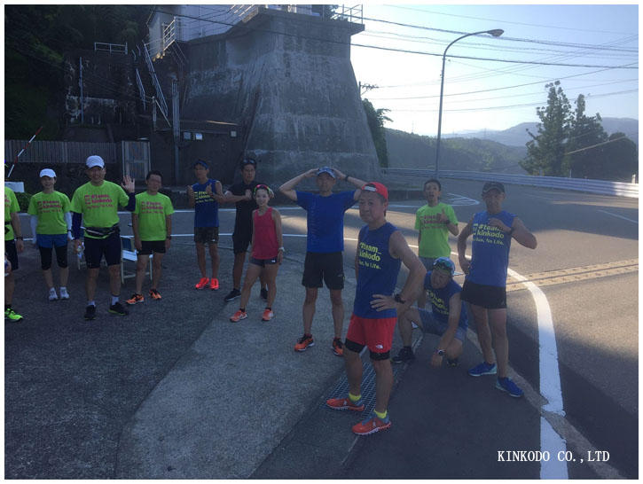 適当に撮ったので端の方、切れてしまって申し訳ありません。思ったより距離があり、ここまで7キロ。ここで給水。スポーツドリンク一本をあっという間に空けて、そして折り返し。