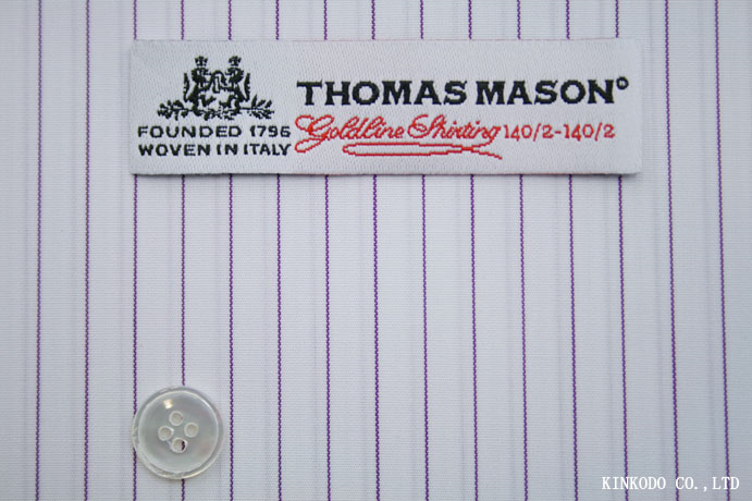 細いラインのようなパープルストライプ 140番手双糸 トーマスメイソン社製生地 綿100% お仕立て上がり¥25,000+税でございます。ご注文お待ち申し上げております。