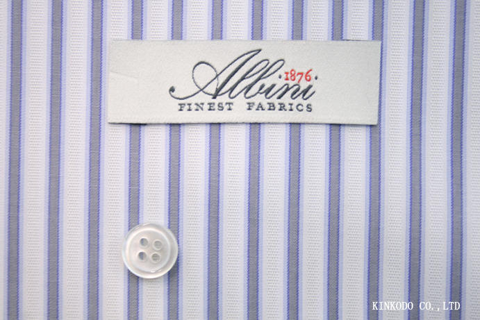 上の生地は、NO-9415004 グレー×ブルーストライプ、間は織り柄 イタリア アルビニ社製 綿100% お仕立て上がり¥18,000+税です。
