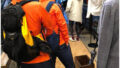 当店の前を通過する時に、弟がカメラを構えているので、近寄ります。「西田さんにここうちの店なんです。」と説明し。片町きららの前で応援してくれる商店街の方々とハイタッチ。