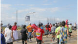 スタート時間になったので、西田さん、そしてペースランナーの4人と一緒にCブロックの一番最後尾に並びます。