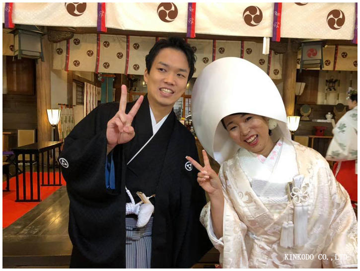 結婚式は、石浦神社で神前結婚式でした。厳かな雰囲気の中、三三九度をかわして、結婚式は終了。