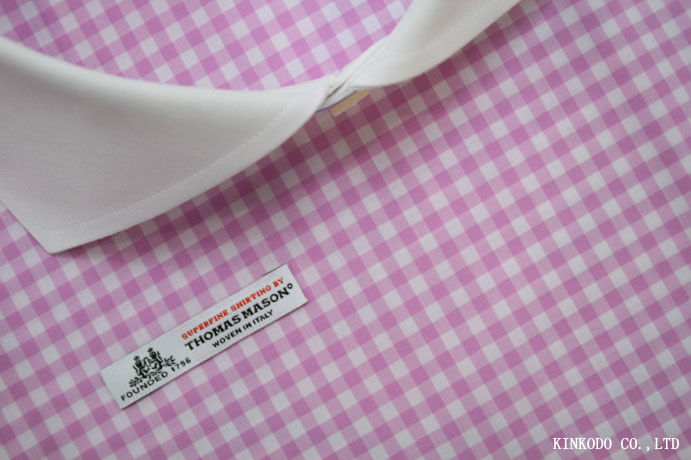 NO‐713 ピンクのギンガムチェック生地 イタリア・トーマスメイソン社製 綿100% お仕立て上がり¥18,000+税。