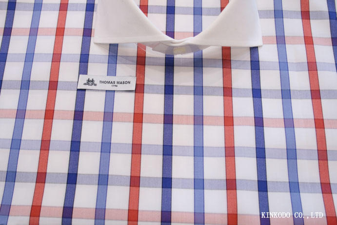 大柄の明るいチェック生地 イタリー・トーマスメイソン社製生地 綿100% お仕立て上がり¥18,000+税 半袖でなら私でも着れるかな?