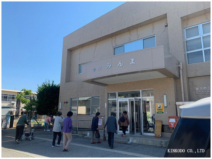 三馬公民館。私が到着した時点で次から次に公民館内に入るお年寄り。いや人生の大先輩。