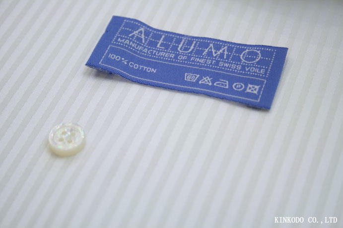 夏生地ドビーの光沢が美しい薄い白のボイルストライプ生地 スイス ALUMO アルモ社製生地 コットン100% お仕立て上がり¥21,000+税