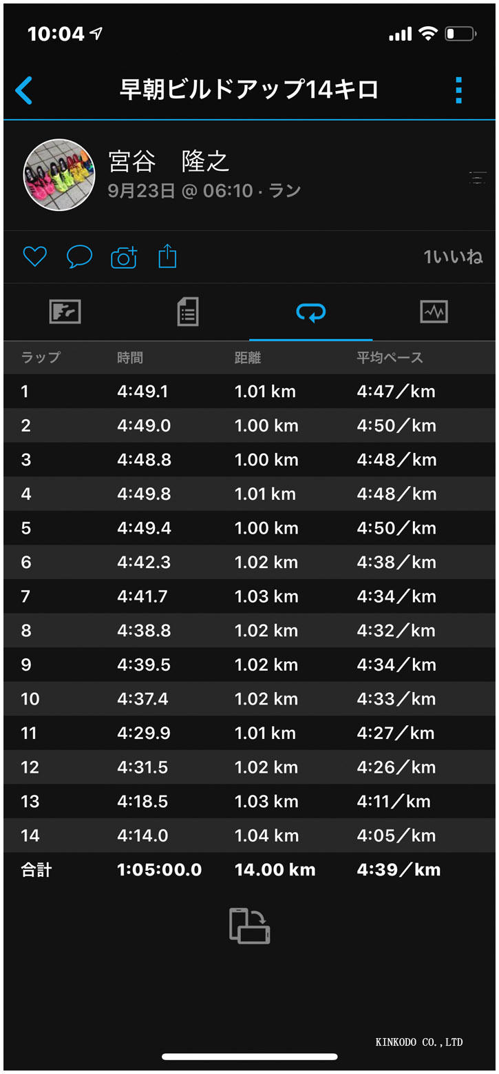 練習メニューは早朝なのと、ポイント練習が続いているので、土曜日と一緒なメニュー。4分50秒で5キロ、4分40秒で5キロ、4分30秒で2キロ。そして今日はおまけで4分20秒で2キロ。早朝ですから身体が動きません。心肺は楽なのですが、身体が動かない。なんとかこなしてゴール。