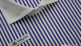 ブルーベースにネイビーとグリーンの140高級番手ストライプ スイス ALUMO アルモ社製生地 コットン100%