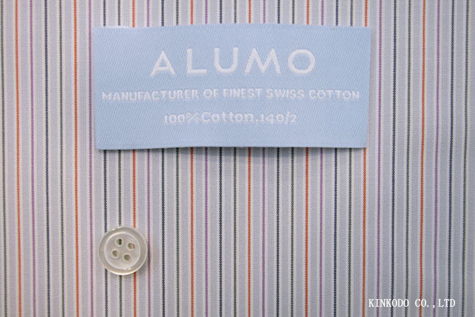 140番双糸の高級番手マルチカラーの細ストライプ スイス ALUMO アルモ社製生地 コットン100%