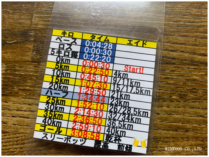 このラップ表は同じ3時間10分を目指すP子とB姫にも渡しています。私はラップの下にスリーポッズ。そして腰高、前傾と注意することも書きました。疲れてくると目線がどうしても上を向き遠くを見てしまうので前傾も入れました。