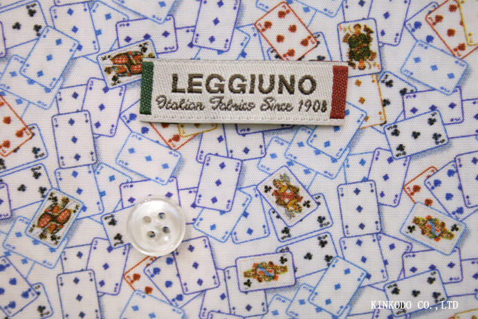 トランプ柄のプリント生地 レジウノ LEGGIUNO社製生地 綿100% ¥19,000+税 マジシャンになってお金を簡単に出すことはできないかも知れませんが、マジシャンの方でもお作り頂けるようなシャツならお作りできます。