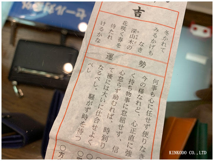 番号を巫女さんに告げると、半分に折って中が見えないようにそっと差し出してくれます。