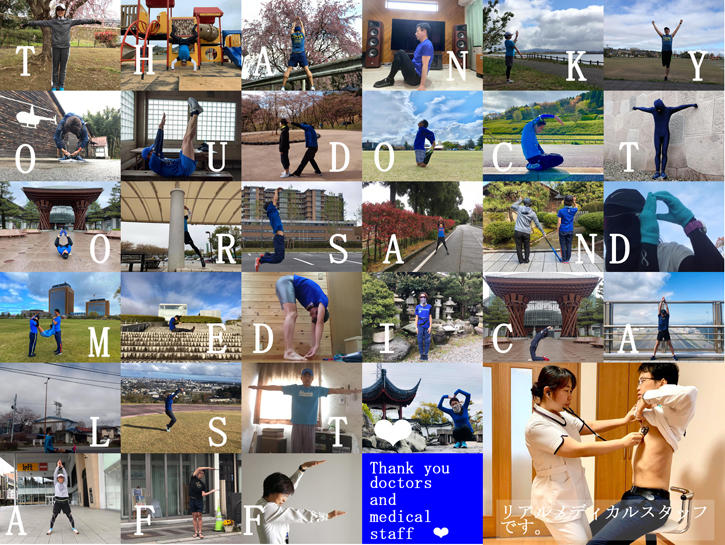我々のチームにもドクターや医療従事者がいます。そして今最前線で苦労をされています。その方々への御礼をということで、「Thank you doctors and medical staff❤」とさせて頂きました。最後の写真は実際に医療現場で活躍している看護師です。