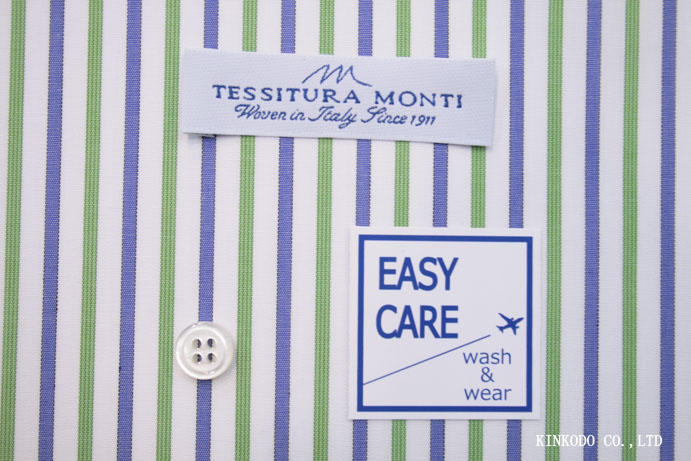 ネイビーとグリーンのEASY CAREのストライプ生地 MONTI モンティ社製生地 綿100%