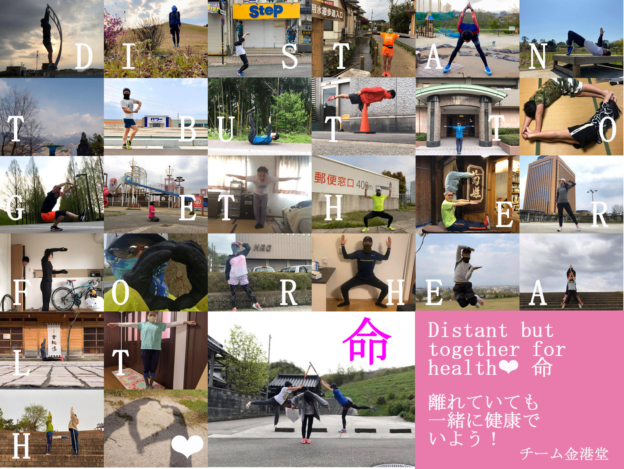 一緒に走ることができなくなって3回目の朝練。自宅から人文字を撮っているメンバー。おい寝起きかい?というメンバーもいますが、本日の人文字は。【Distant but together for health♡ (離れていても一緒に健康でいよう!)】だったのですが、一名はフリースタイルということで、このタイトルにふさわしいこの人文字を。