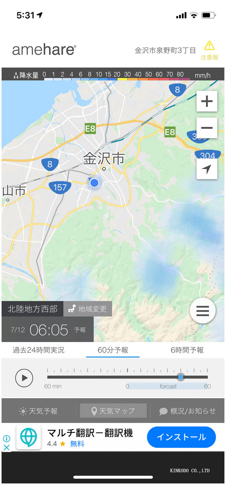 今日の朝練は雨が降ってたのですが、雨雲レーダーによると・・・