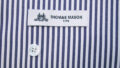 シンプルな、白ベースにネイビーの細チェックの生地 トーマスメイソン社製生地 140番手双糸ゴールドライン 綿100%