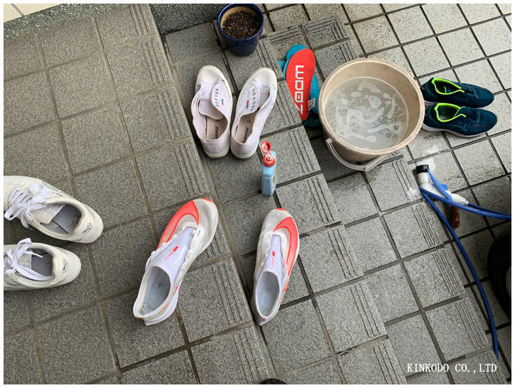 久しぶりに晴れたので、今日は溜まっていたシューズを洗う作業。