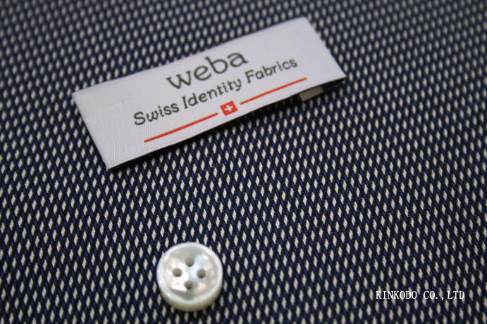 立体感あるブルーのEASY CAREの生地 スイス Weba ウエバ社製生地 綿100% お仕立て上がり¥18,000+税ですが。