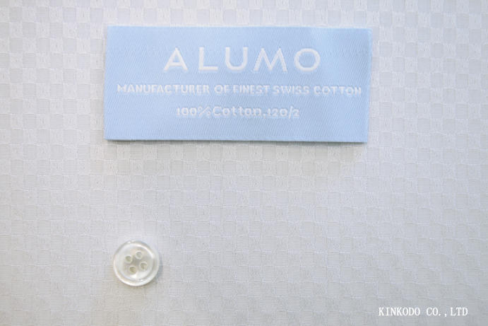 四角が並んだ白ドビー生地 120番双糸 スイス ALUMO アルモ社製生地 コットン100% 【お仕立て上がり¥22,000+税】です。