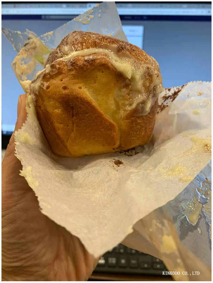 どちらかというとシナモン苦手な私ですが、シナモン自体はあまり強くなく、濃厚な甘さとボリュームが疲れたからだを癒やしてくれます。濃厚と言ってもコンビニのパンに付いているようなあのただ甘い甘さでもありません。